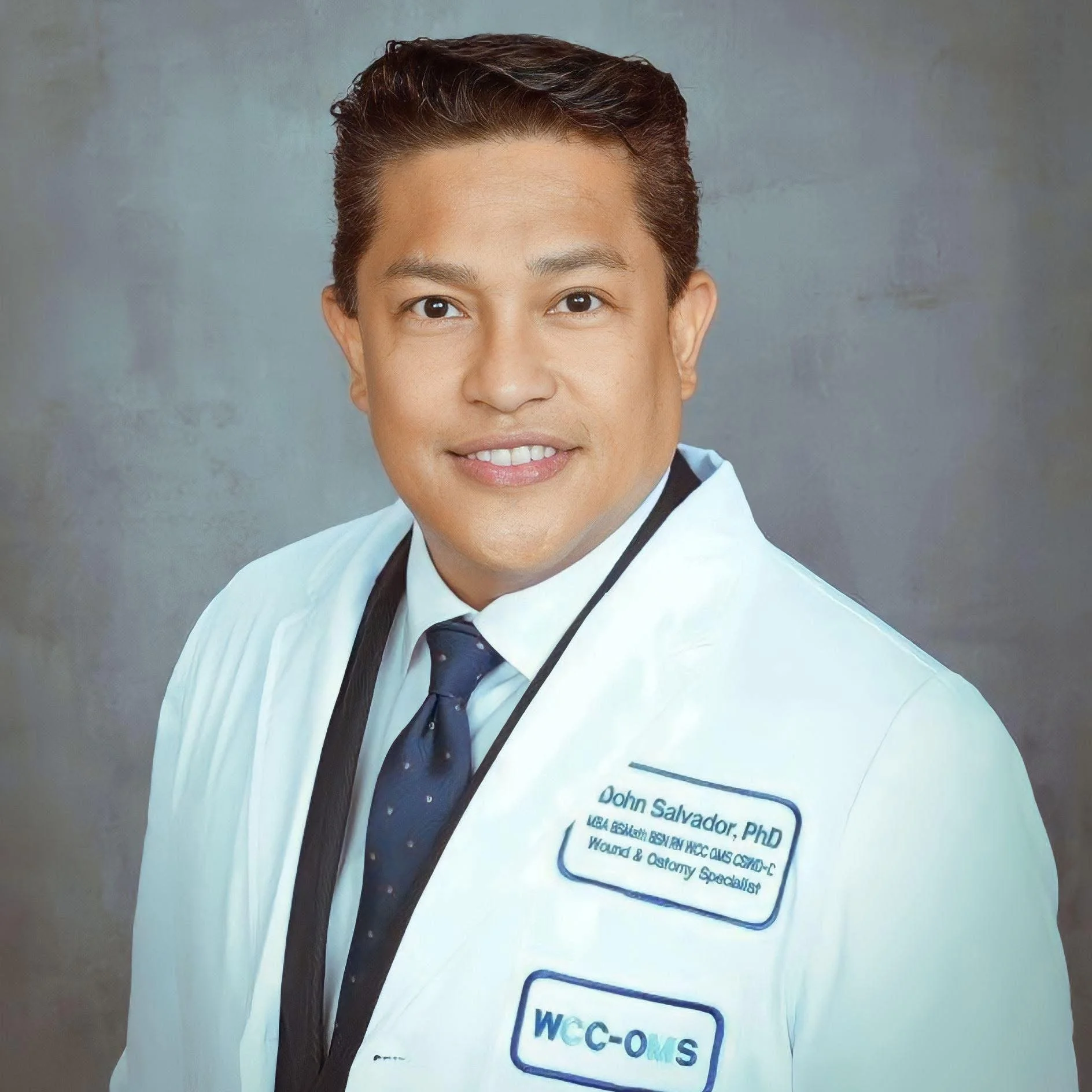 Dr. Dohn Salvador, founder of California Wound & Hyperbaric Specialists Inc., brings over two decades of inpatient wound care experience to the forefront of modern healing. A nationally recognized Wound Specialist and Nurse Educator, Dr. Salvador holds certifications in Wound and Ostomy Care (WCC-OMS) since 2008, as well as in Conservative Sharp Wound Debridement (CSWD-C).